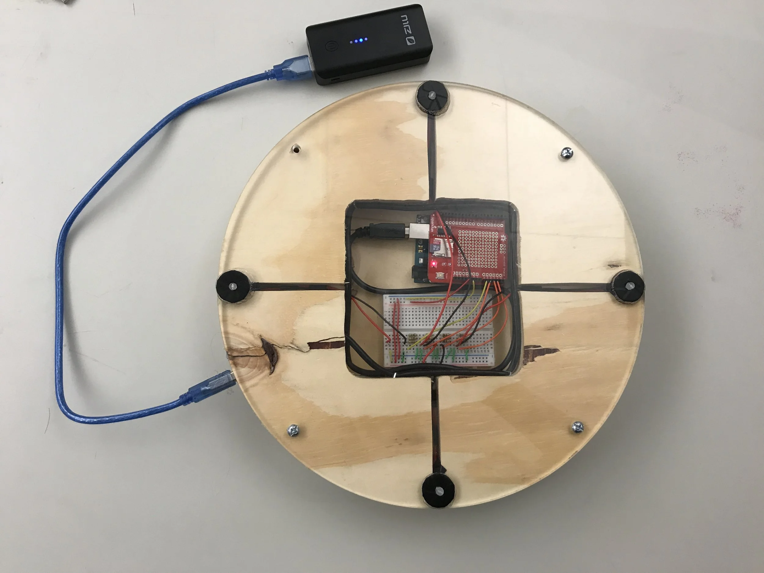 Using a jigsaw, router, and vertical belt sander, I used the lines etched by the laser cutter to finish the plywood layers. The bottom layer was plunge routed to produce the center cut out where the electronics were housed, and rough cut to circular using a jigsaw. Finally, the circle was belt sanded to a finished edge and assembly holes were drilled.